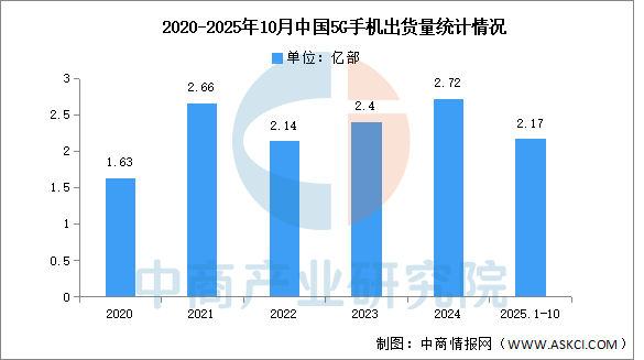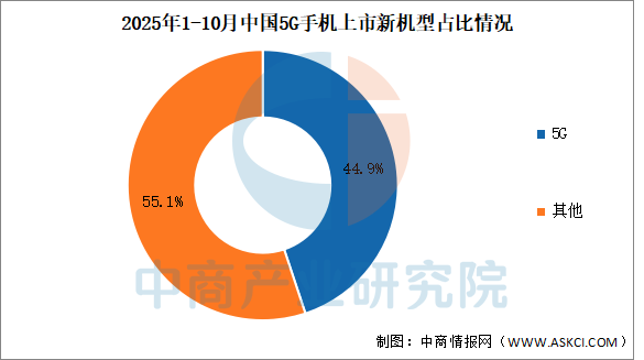 2025年1-10月,5G手机上市新机型199款,同比下降2.5%,占同期手机上市新机型数量的44.9%。